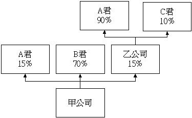 A11:除了直接持有法人的股份或資本外,應包含間接持有股份或資本的部分。例如:下圖中A君於甲公司的總持股比例為: 直接持股(15%) + 間接